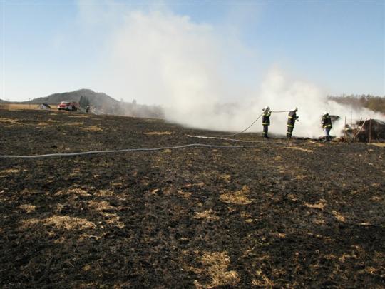 Hořela louka o ploše cca 200 x 50 metrů